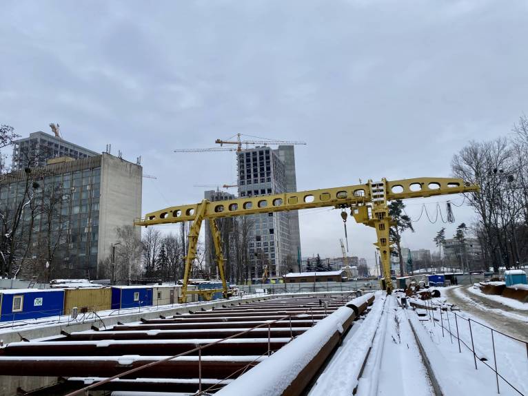 Несмотря на сложные погодные условия в феврале 2021, в Киеве продолжается строительство двух станций метро на Виноградарь - "Мостицкая" и "Проспект Правды".