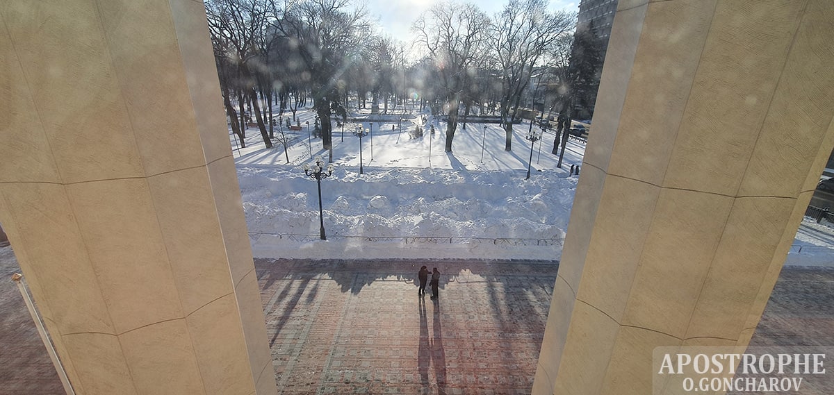 Видимо, снег специально высыпали на площади, судя по огромным сугробам.