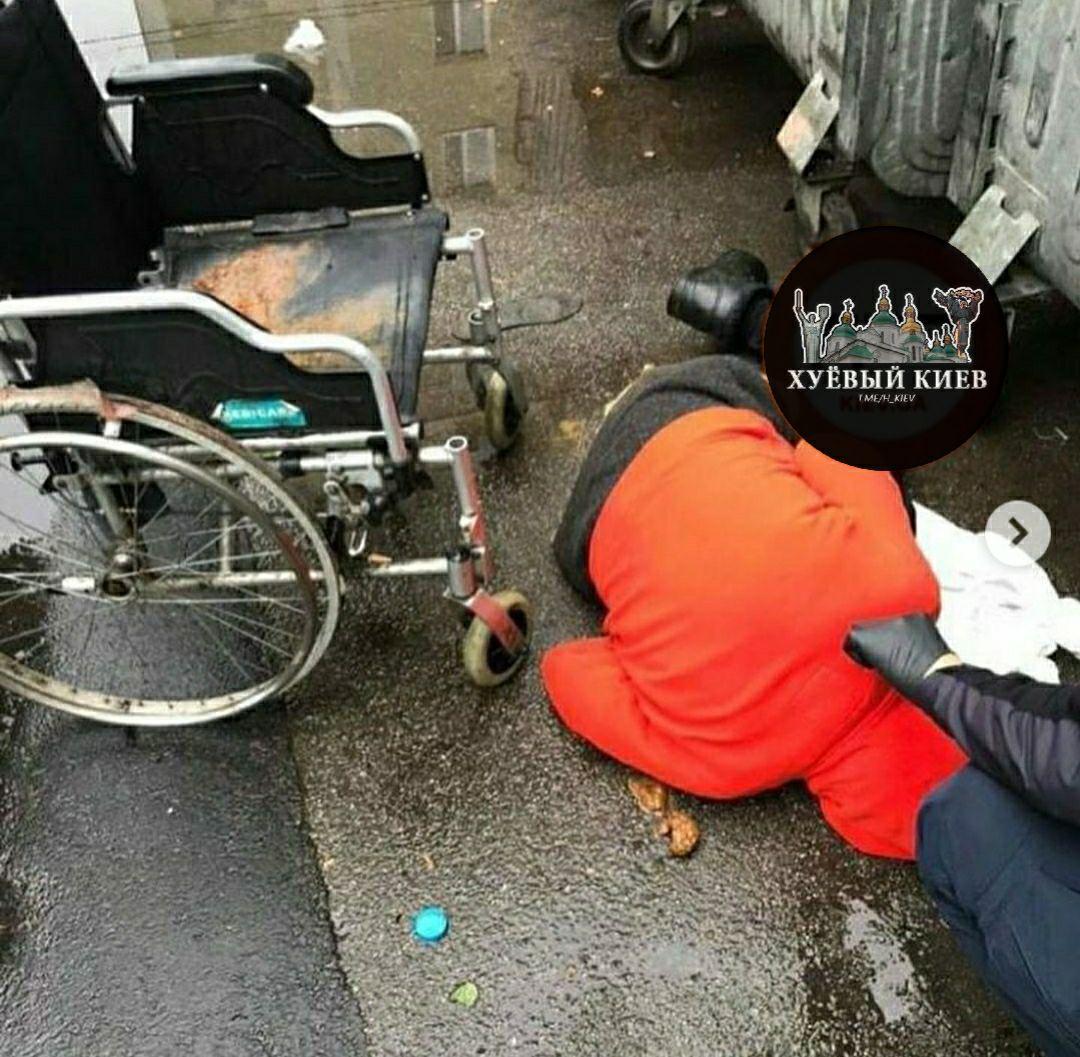 В Киеве на Харьковском шоссе неизвестные выбросили бездомного инвалида на свалку.