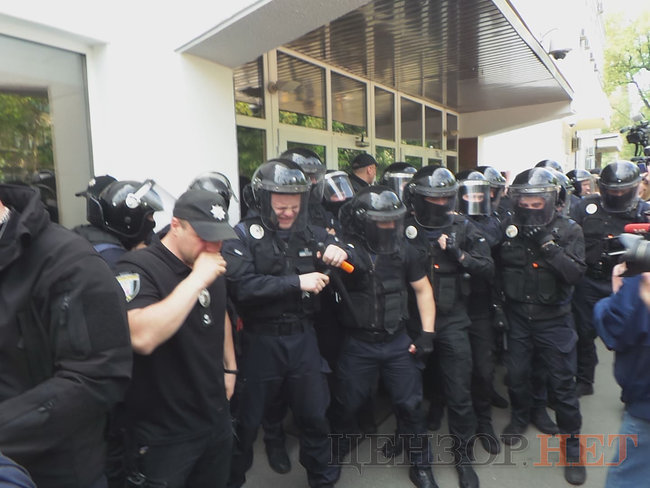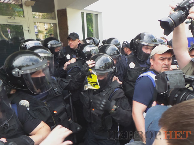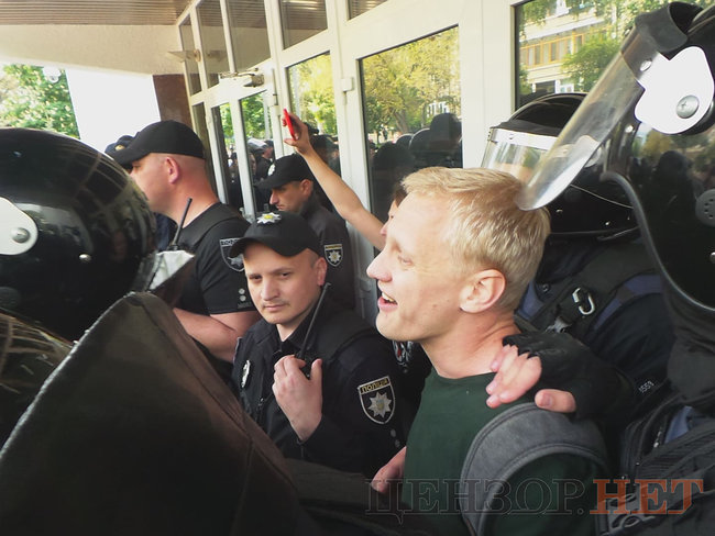 Также правоохранители на несколько минут задержали и завели в здание главу Центра противодействия коррупции Виталия Шабунина, однако, практически сразу же он был отпущен.