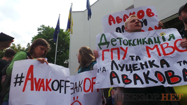 В итоге активисты продолжили свою акцию под зданием МВД. Они развернули плакаты с требованием отставки Авакова, а также озвучили в микрофон свои претензии и требования.