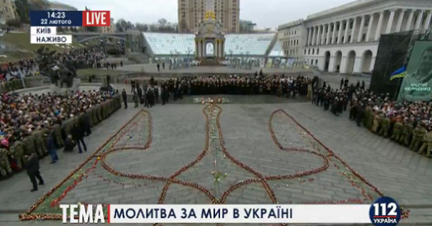 Марш Достоинства, которые проходит сегодня в Киеве, переместился на Майдан Независимости. Там собравшиеся читают молитву за мир в Украине.