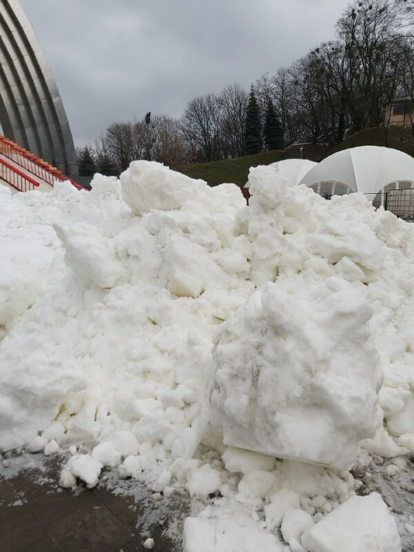 С целью обеспечения проведения профессиональных соревнований "Дабл Трипл Snow Fest 2020", которые состоятся 19-20 декабря, в Киев к Арке дружбы народов начали свозить снег. Его везут грузовиками с ледовых арен разных городов, а также с западной Украины.