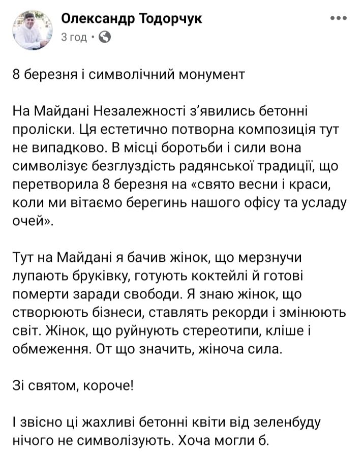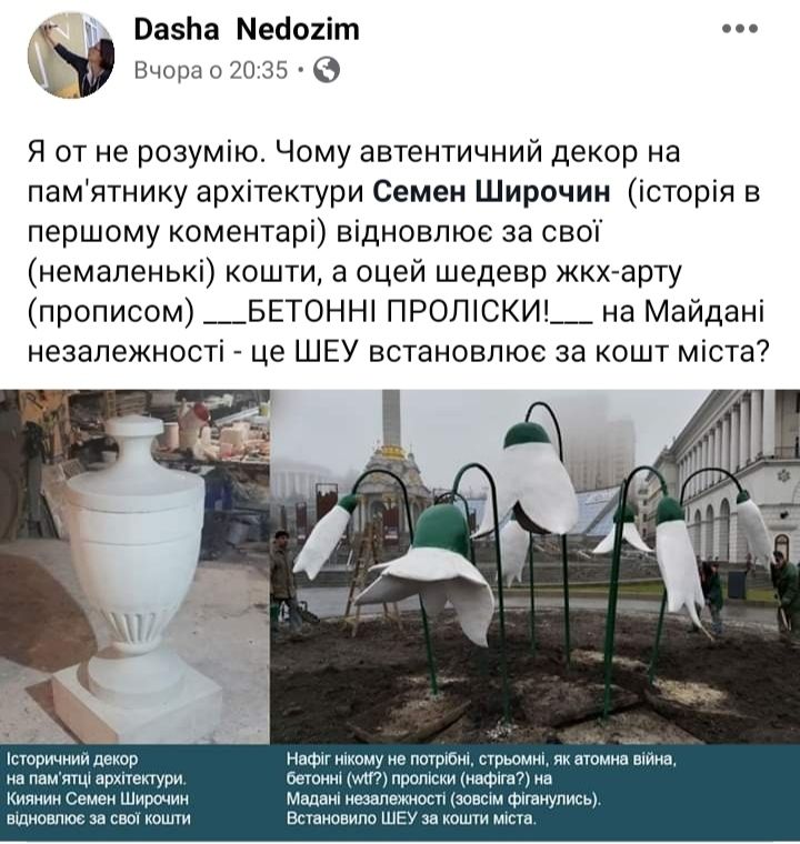 "Мы монтируем новую фотозону, которую дарим всем киевлянкам и гостям столицы к празднику весны – 8-го марта. Подходы к фотозоне вымостим мраморной крошкой. Наши подснежники сделаны из бетона. Но, не волнуйтесь, закрепляем их надежно, не упадут. Все будет безопасно. Перед ними высадим тюльпаны и гиацинты, если это будет вписываться в общую композицию", – рассказали в КП СЗН Шевченковского района.