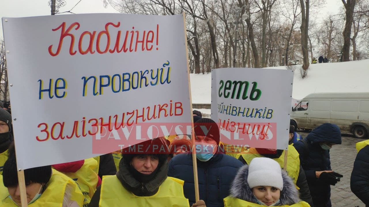 В среду, 17 февраля, под Кабинетом министров проходит анонсированный ранее митинг железнодорожников. Работники жалуются на "масштабное уничтожение" рабочих мест на "Укрзализныце" и обвиняют главу компании Владимира Жмака в бездействии.
