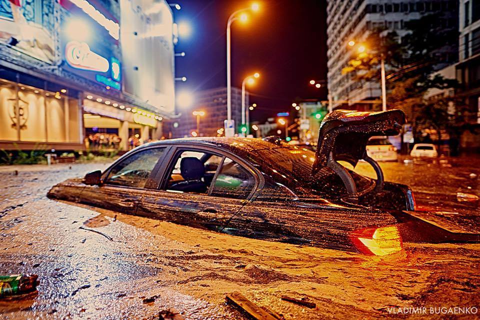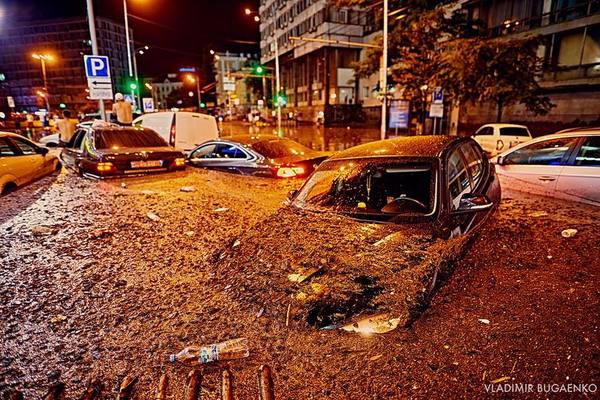 Фото последствий непогоды в центре города показал фотограф Владимир Бугаенко на своей странице в Facebook.