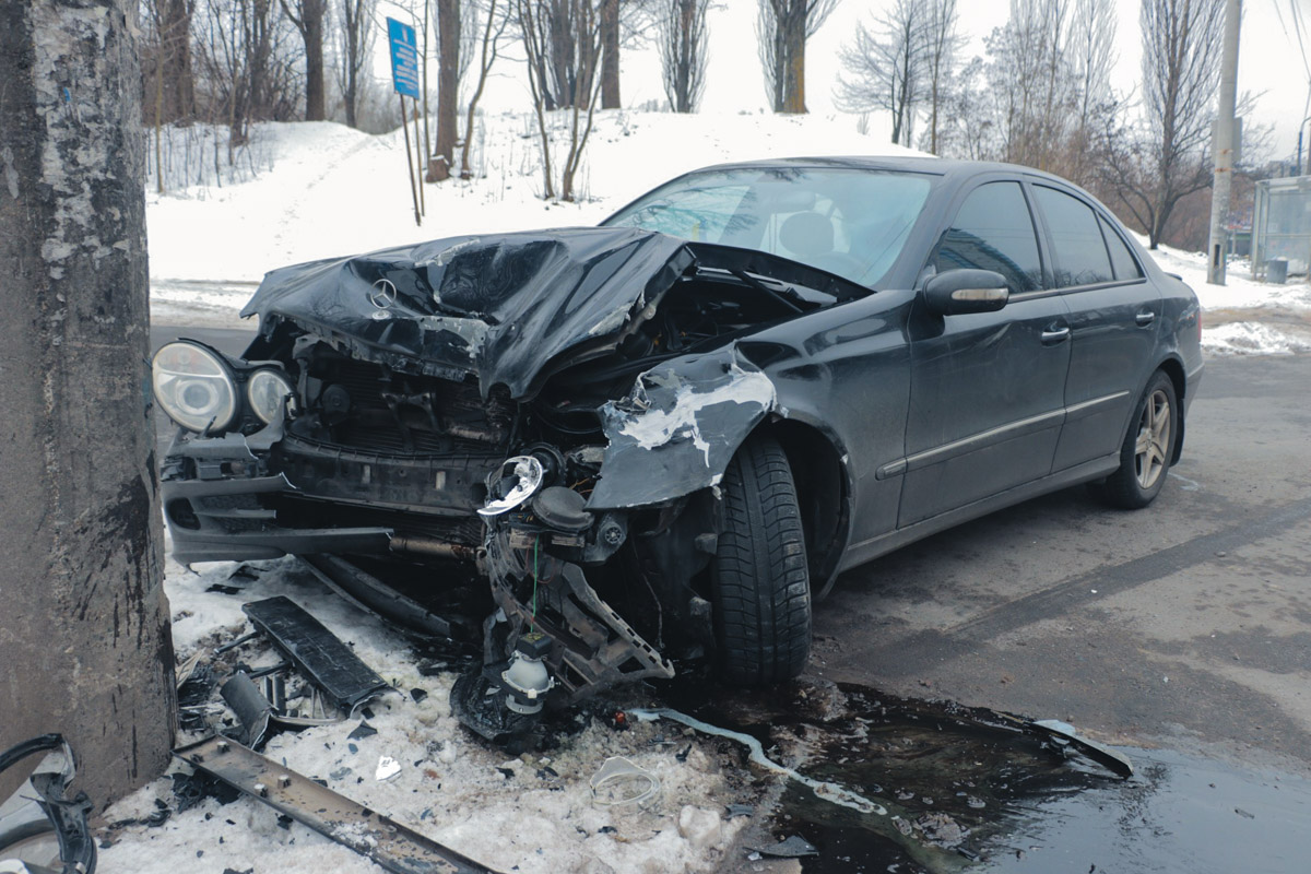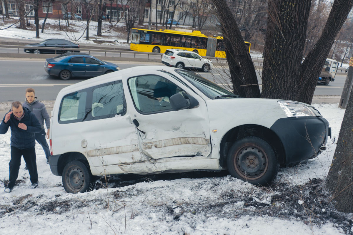 9 февраля в Киеве на улице Елены Телиги столкнулись автомобили Mercedes и Peugeot.
