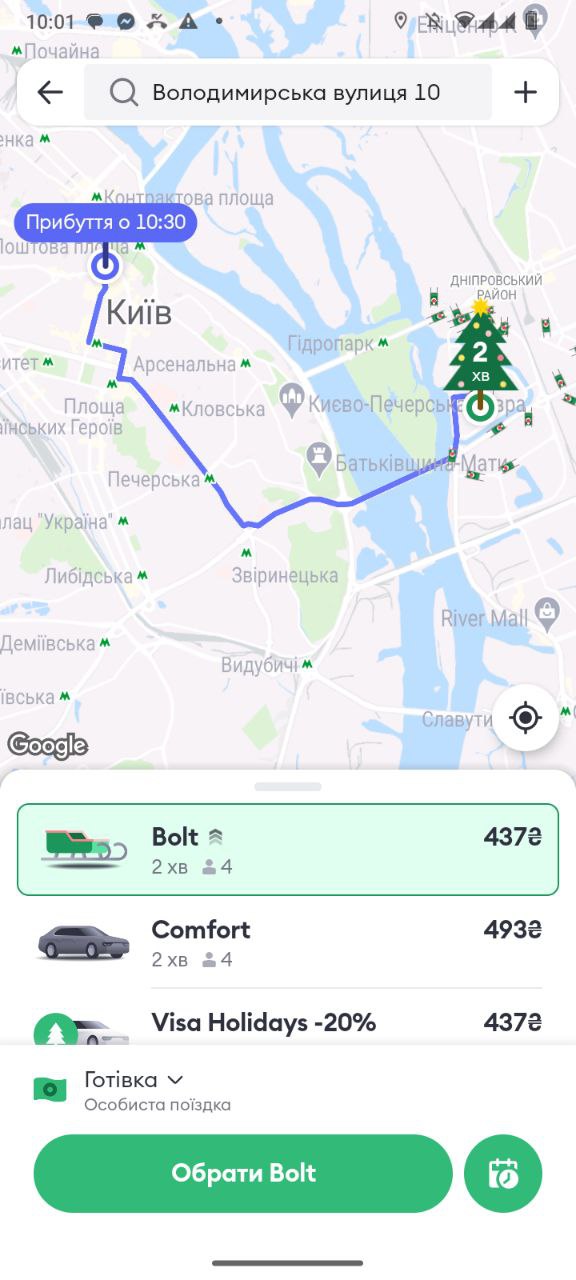 Так, если вам срочно необходимо попасть с левого на правый берег Днепра, воспользовавшись услугами такси "Bolt", придется заплатить от 430 до 500 гривен. Обычно такая поездка киевлянину обходится в половину дешевле.