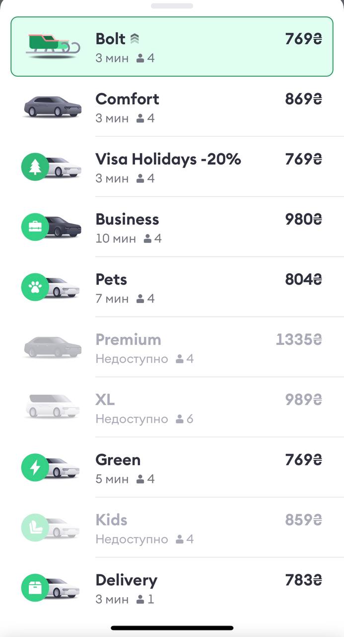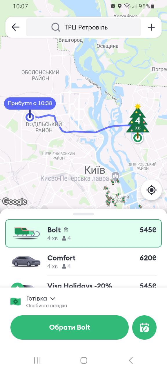 Если вам понадобится добраться с ул.Левобережной до главного железнодорожного вокзала, то такая поездка с "Bolt" обойдется вам в 760-800 грн.