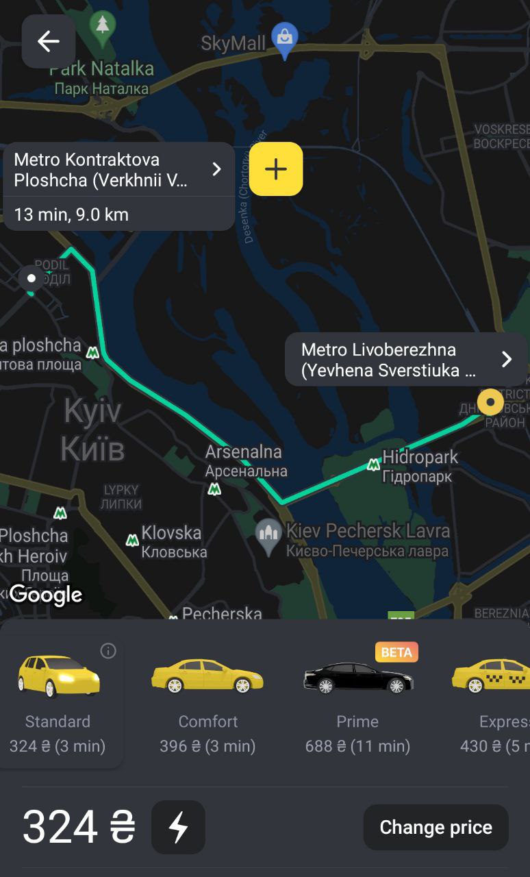 В "Uklon" за такую же поездку вам, в зависимости от комфортабельности авто, придется выложить из собственного кармана 320-680 грн.