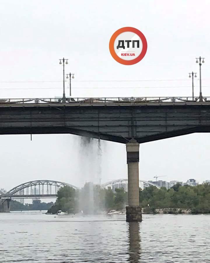 15 сентября в интернете появилось фото, как сквозь разваливающейся мост имени Патона в Киеве ливнем стекает вода.