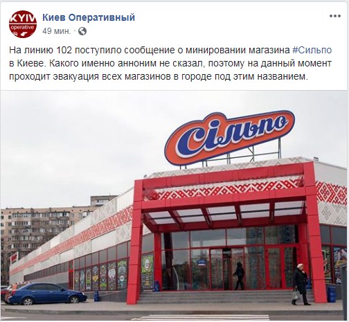 Как "Киев Оперативный", неизвестный сообщил о заминировании супермаркета "Сильпо", однако не уточнил какого, потому проверяются все супермаркеты сети.
