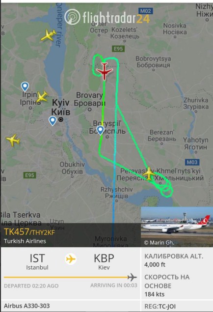 Из-за снегопада в аэропорту "Борисполь" не мог приземлиться аэробус А330 Turkish Airlines.