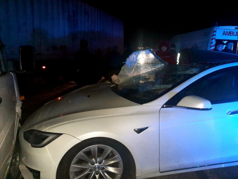 На месте аварии присутствовала полиция и скорая помощь. Поскольку автомобиль Tesla сильно пострадал, для деблокирования водителя и пассажира пришлось вызвать также сотрудников ГСЧС.