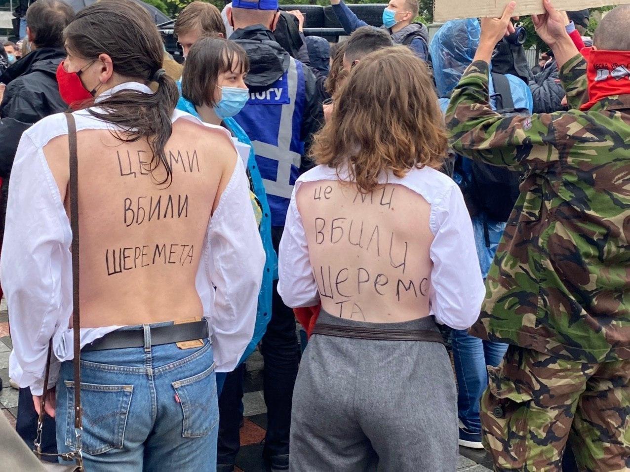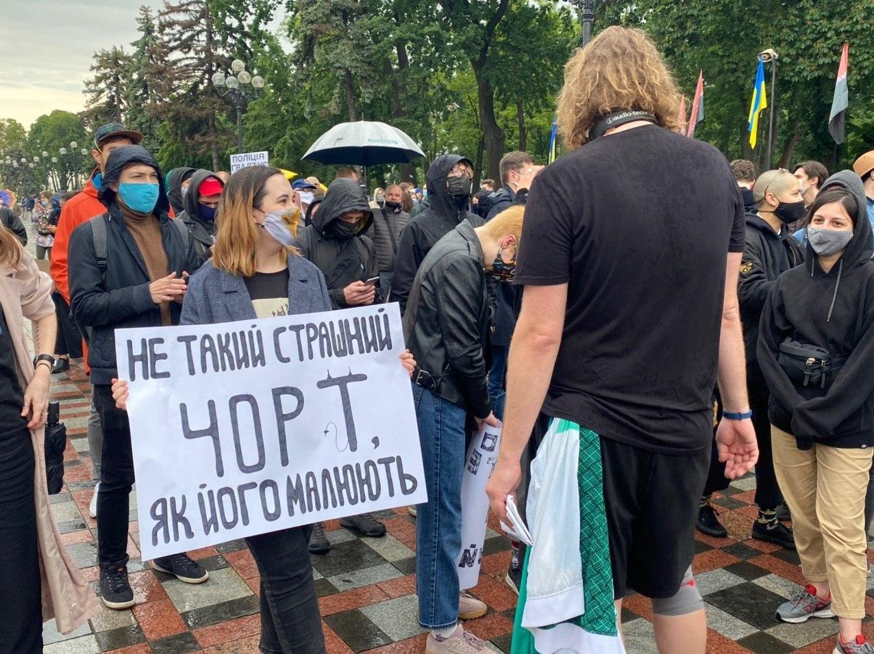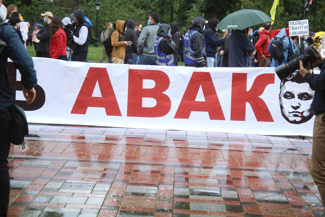 Протест начался с началом заседания правительства в 10:00. Люди требуют отставки министра внутренних дел Арсена Авакова.