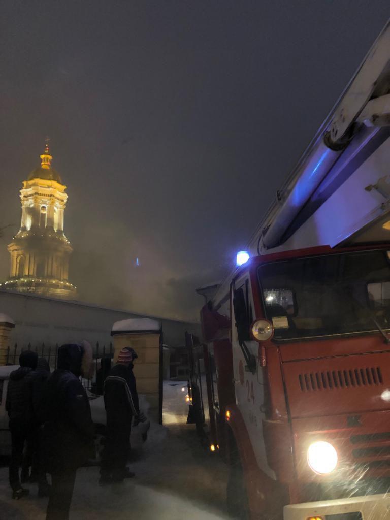 На территории Киево-Печерской Лавры работают пожарные.