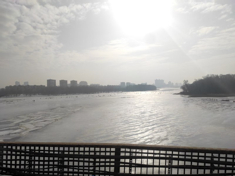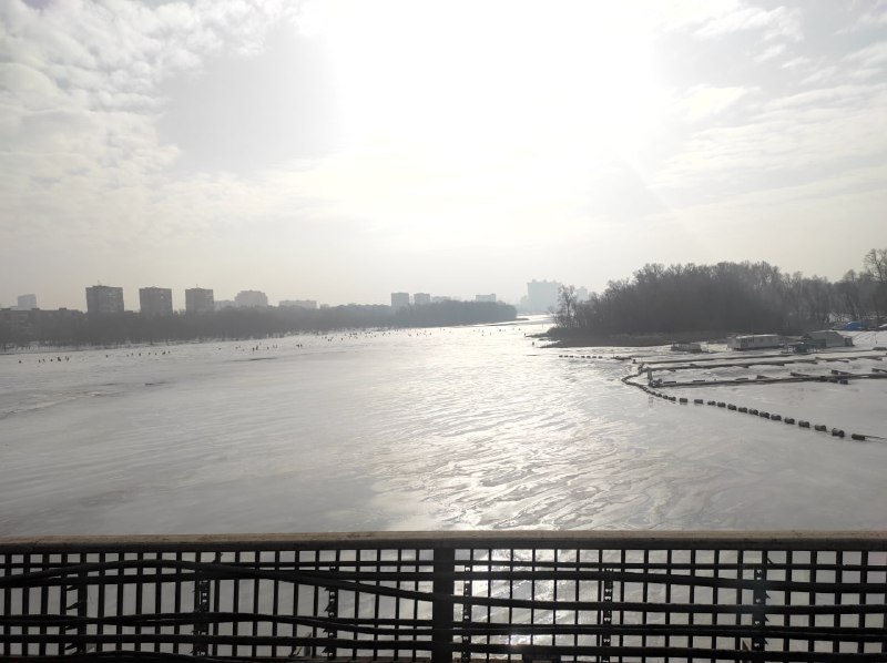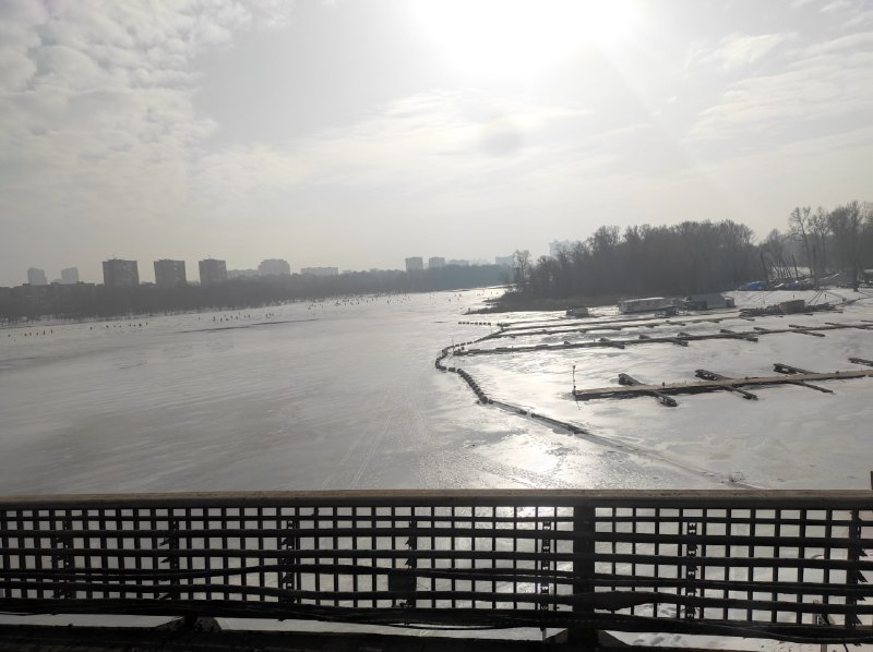 Такой наплыв отдыхающих заметили на льду реки между станциями метро "Левобережная" и "Гидропарк".