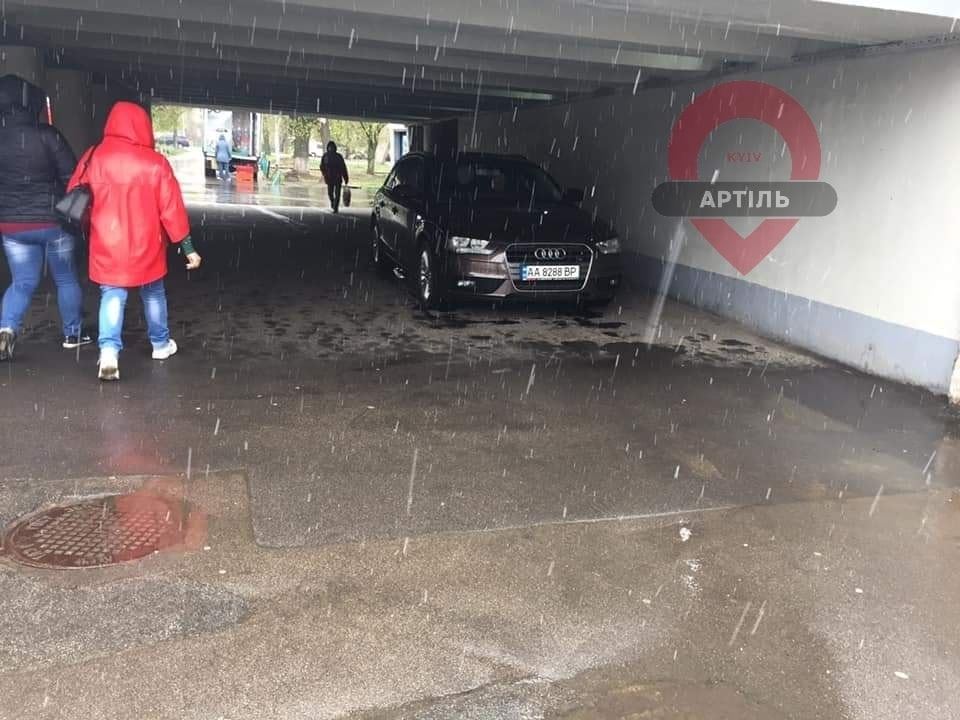 В Киеве во вторник, 14 апреля, "герой парковки" спрятал от дождя и снега свой автомобиль в подземном переходе, где ходят исключительно пешеходы, но никак не "ходят" машины.