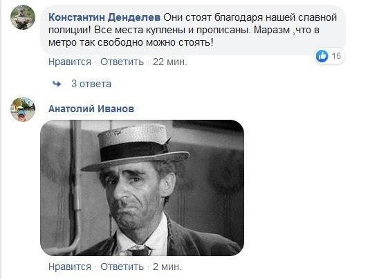 "Они стоят благодаря нашей славной полиции. Все места куплены и прописаны. Маразм, что в метро так свободно можно стоять", - заметил один из комментаторов.