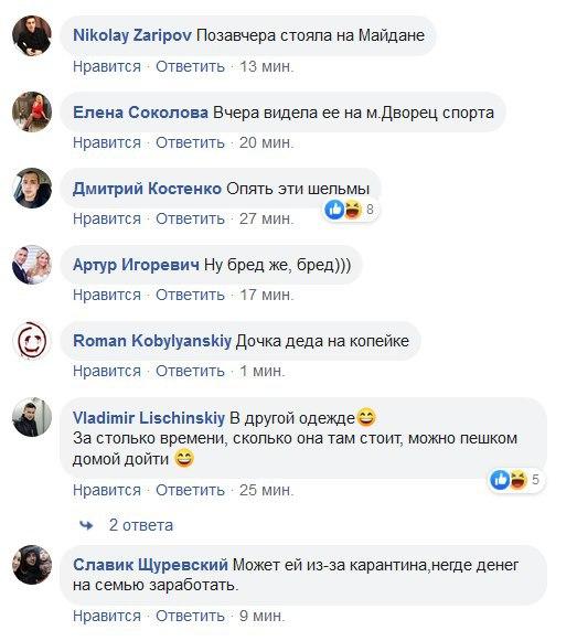 В комментариях пользователи сети пишут, что наблюдали ее также на Майдане, на станции метро Дворец спорта и других людных даже во время карантина местах.