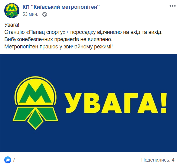 Помимо этого, 3 марта в связи с проведением на НСК "Олимпийский" футбольного матча между командами "Динамо" (Киев) и "Колос" (Ковалевка) ограничили вход пассажиров на станциях "Дворец спорта", "Олимпийская" и "Площадь Льва Толстого".