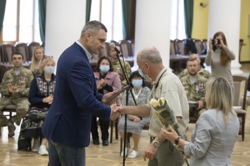 Мэр Киева Виталий Кличко вручил благодарности городского головы украинским защитникам, женам погибших героев и матери одного из киевлян-воинов, павших в зоне АТО.