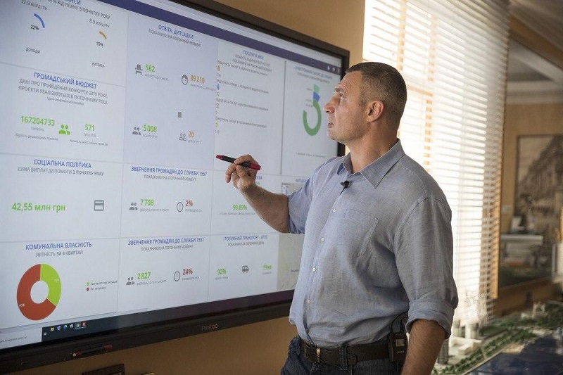 Мэр Киева Виталий Кличко опубликовал на своей странице в Facebook видео о том, как "умные" технологии помогают ему в управлении столицей. В частности, он продемонстрировал работу интерактивной системы, с помощью которой может контролировать процессы, происходящие в городе, не выходя из рабочего кабинета.