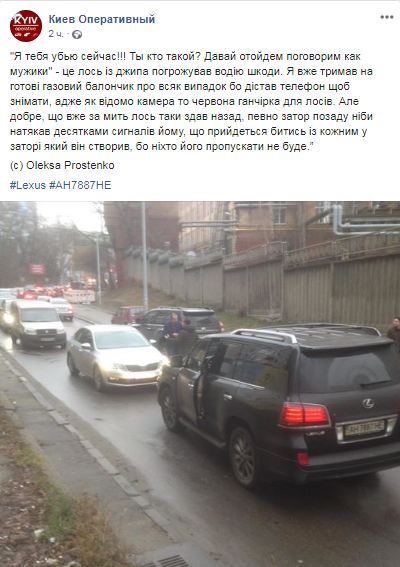 "Я уже держал наготове газовый баллончик на всякий случай так достал телефон чтобы снимать, ведь как известно камера - красная тряпка для лосей. Но хорошо, что уже через мгновение лось таки сдал назад, вероятно пробка позади будто намекала десятками сигналов ему, что придется драться с каждым в пробке которую он создал, потому что никто пропускать не будет", - пишет автор.