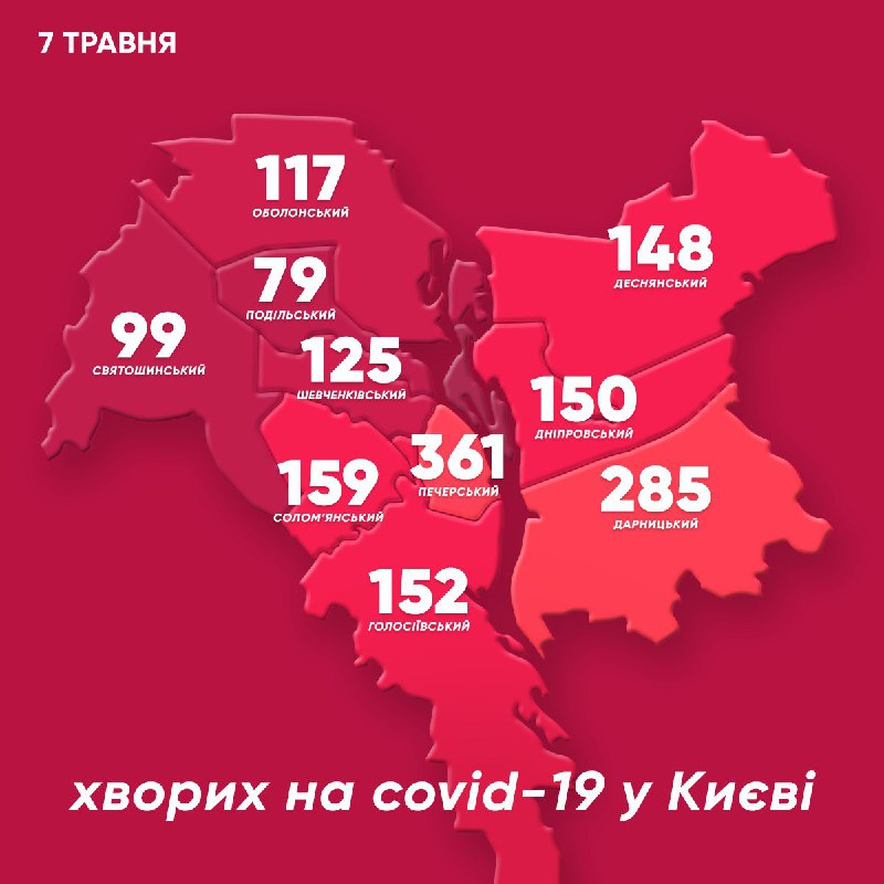 По состоянию на утро 7 мая в Киеве коронавирус COVID-19 был подтвержден у 1675 человек, за последние сутки было обнаружено 24 новых случаев.