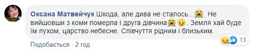 "Девушка 18 лет умерла, а вторую, которой 17 будто везут в Киев. Сказала мне знакомая, которая сейчас находится в бучанской больнице", - пишут в комментариях.