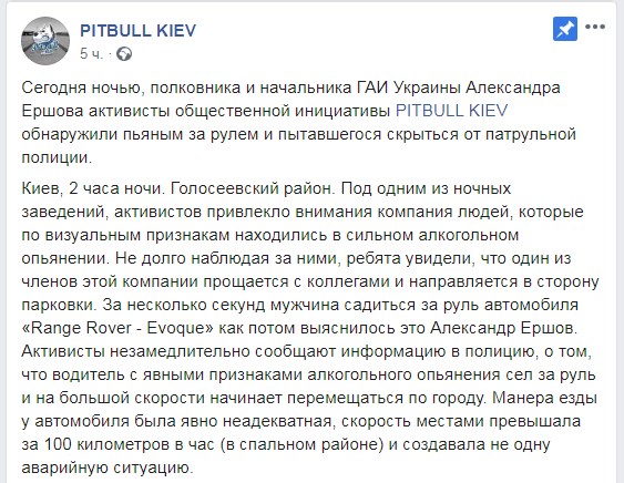 В этот день мужчина отдыхал со своей компанией в Голосеевском районе столицы, но в 2 часа ночи, попрощавшись с друзьями, попрощался и "в сильном алкогольном опьянении" сел за руль Range Rover. Активисты вызвали полицию, а сами отправились за ним.