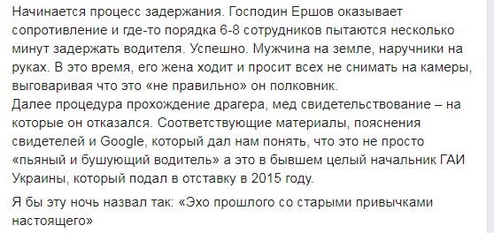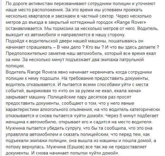 Возле закрытого коттеджного городка Ершов вышел из машины, но вскоре подъехала полиция. Мужчина отказался предъявлять документы, всячески спорил и утверждал, что за рулем была его супруга.