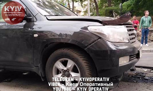 В Киеве на пересечении улиц Тургеневская-Полтавская 23 июня взорвался внедорожник.