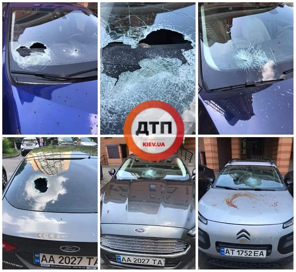 "Суровый Киев: элитный Печерск. Автомобили измазаны чем -то бурым и разбиты лобовые стекла. Что это было то?" - удивляется автор поста.