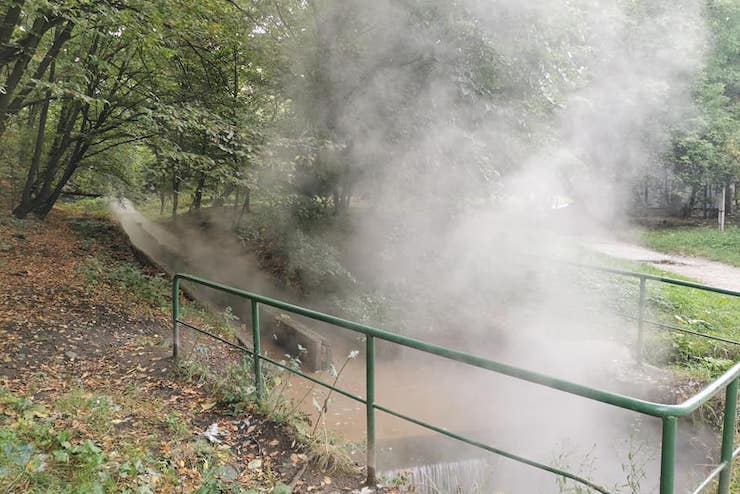В Киеве в Голосеевском парке в пруд стекает горячая вода, из-за чего в водоеме умирает рыба.
