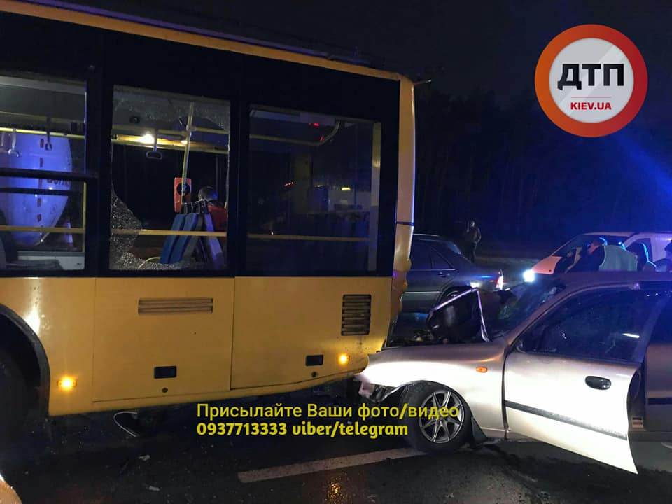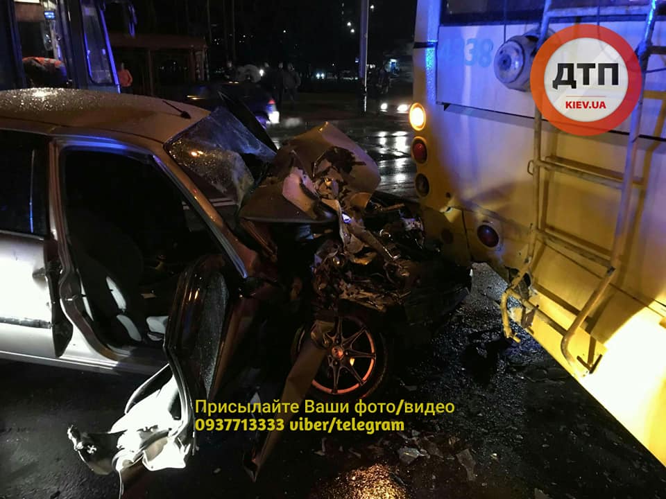 В Киеве на пересечении Лесного проспекта и улицы Братиславской легковой автомобиль врезался в троллейбус.
