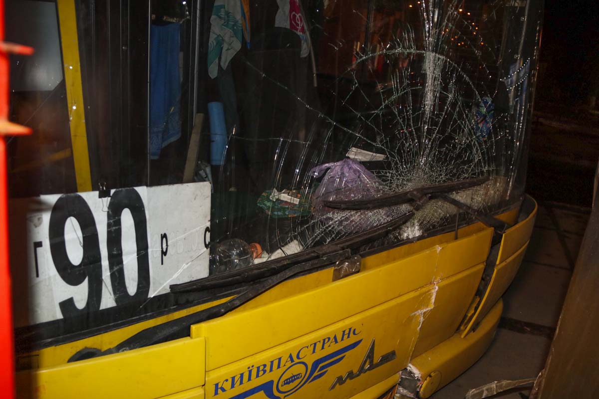 В понедельник, 18 февраля, в Киеве на перекрестке улиц Якуба Коласа и Гната Юры автобус врезался в два МАФа.
