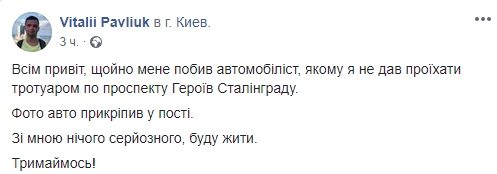 Об в Facebook написал сам пострадавший велосипедист Виталий Павлюк.