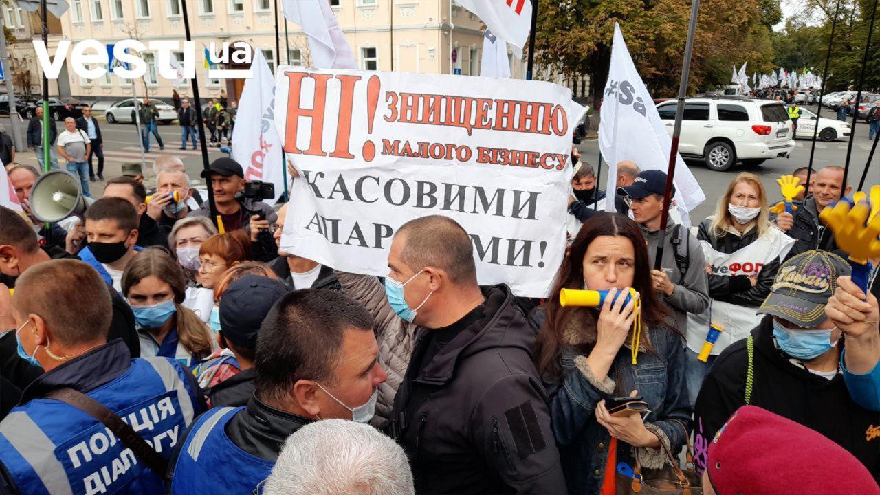 В Киеве в понедельник, 28 сентября, предприниматели вышли на акцию протеста против обязательного введения кассовых аппаратов.