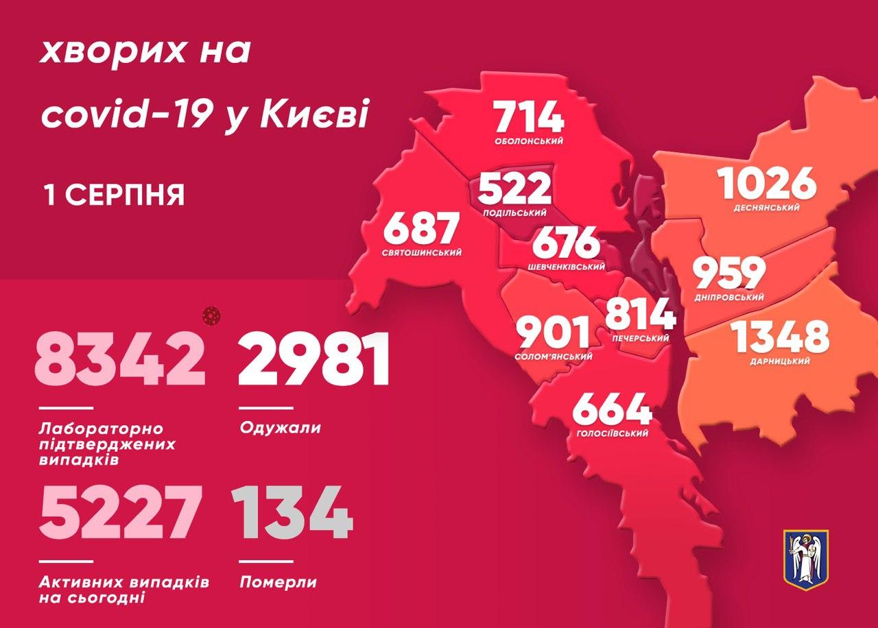 За 31 июля два человека умерли, а за весь период коронавирус унес жизни 134 киевлян.