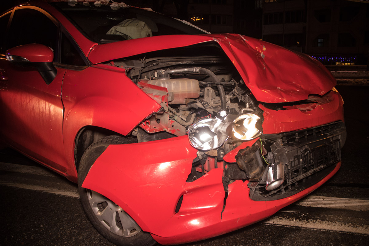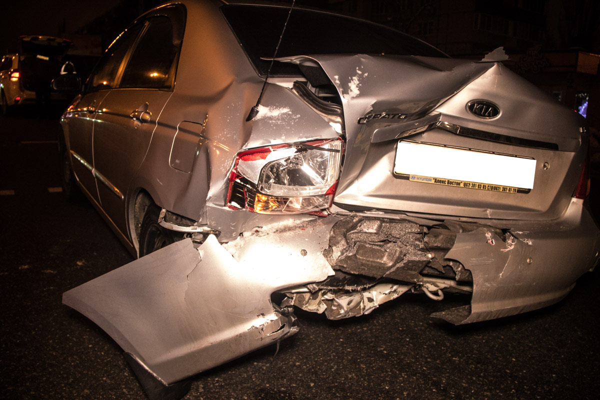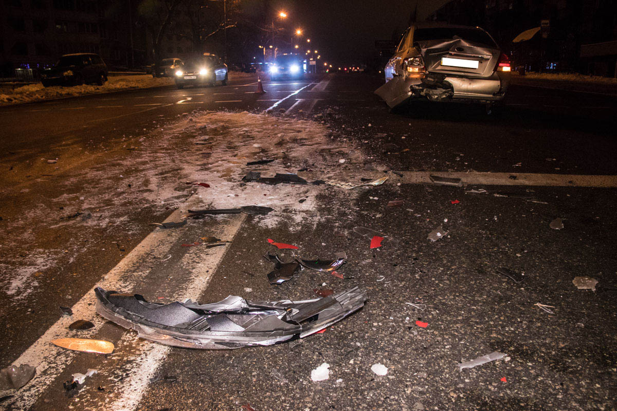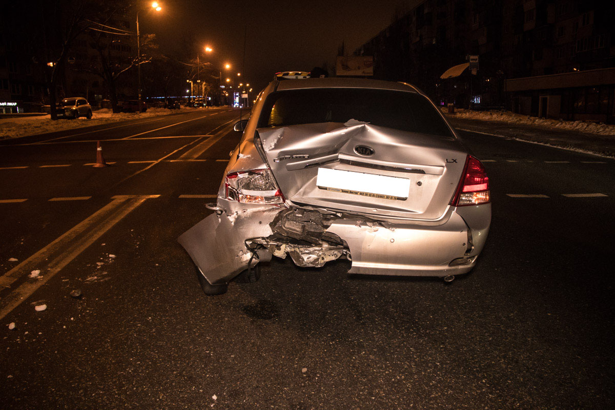 17 декабря на Харьковском шоссе в Киеве пьяный водитель Ford Fiesta на большой скорости влетел в стоящий Kia Cerato.