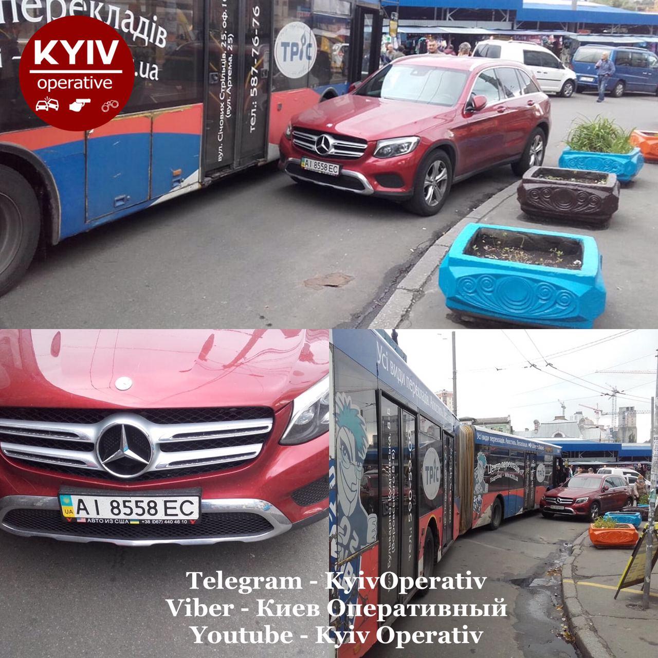В четверг, 1 октября, в Киеве водитель Mercedes оставил свое авто в неположенном месте и заблокировал движение маршруток и троллейбусов, чем вызвал гнев людей.