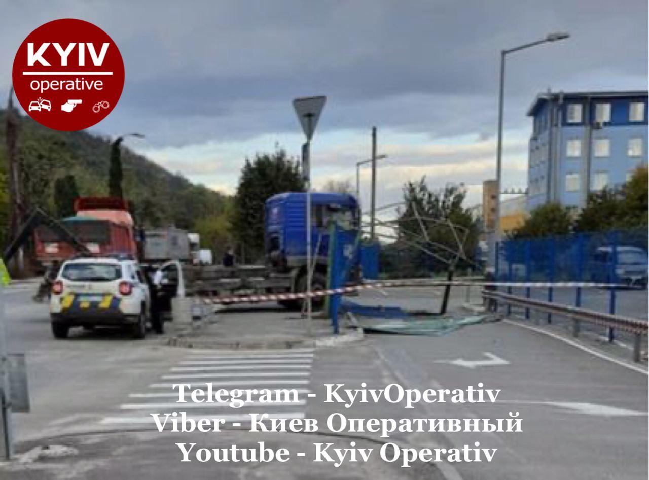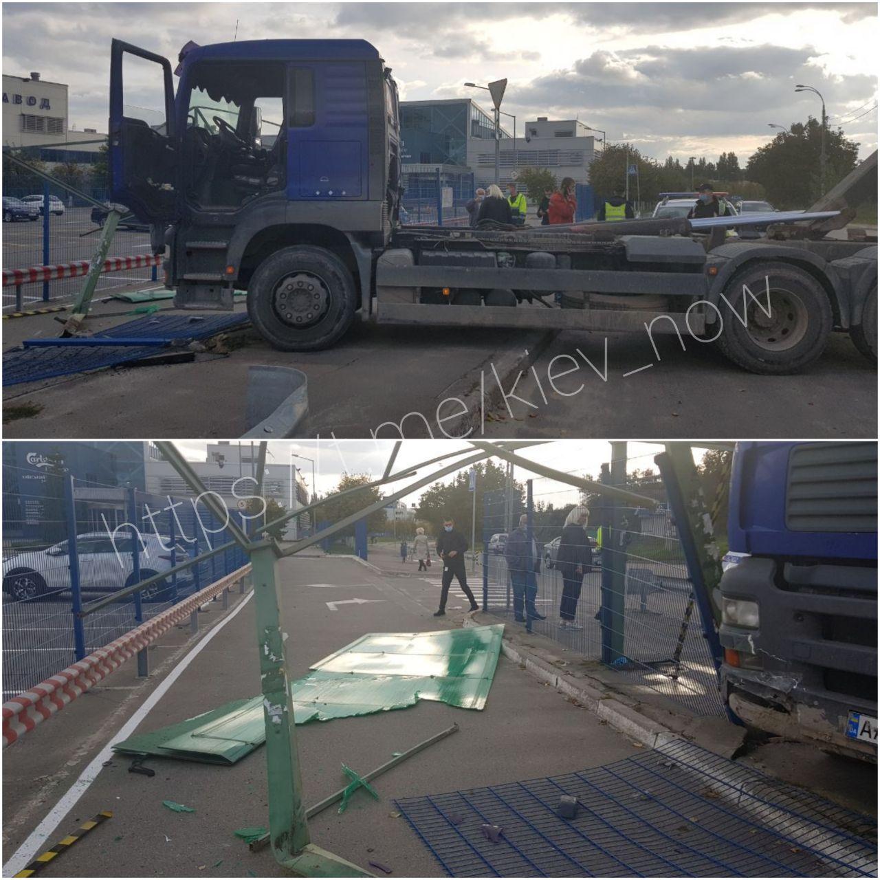 В понедельник, 20 октября, в Киеве грузовик снес остановку общественного транспорта.