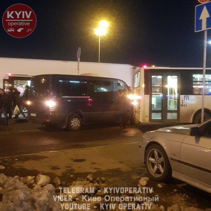 "Небольшой транспортный коллапс произошел прямо сейчас у метро Позняки из-за ДТП, которое случилось на "дублере" между Mercedes (AI7079HM) и маршруткой. Теперь автобусы тут не останавливаются, а люди вынуждены идти к основной дороге для того, чтобы сесть в свой транспорт", - говорится в сообщении.