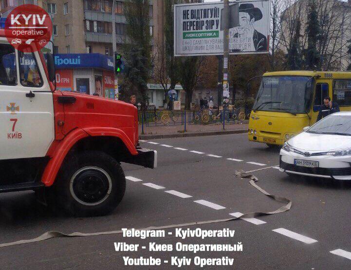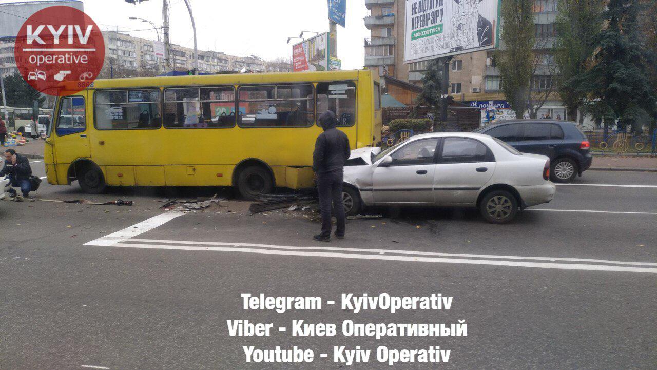 11 ноября в столице на перекрестке улицы Вышгородской с проспектом Правды произошло ДТП с участием маршрутки и легкового автомобиля.