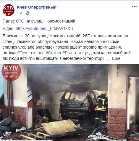 "Около 11:20 на улице Новомостицкой, 25Г, произошел пожар на станции технического обслуживания. Пока неизвестно что именно вспыхнуло, но в результате пожара полностью сгорело помещение и еще несколько автомобилей, которые люди успели вытолкать из опасной территории", - сказано в сообщении.
