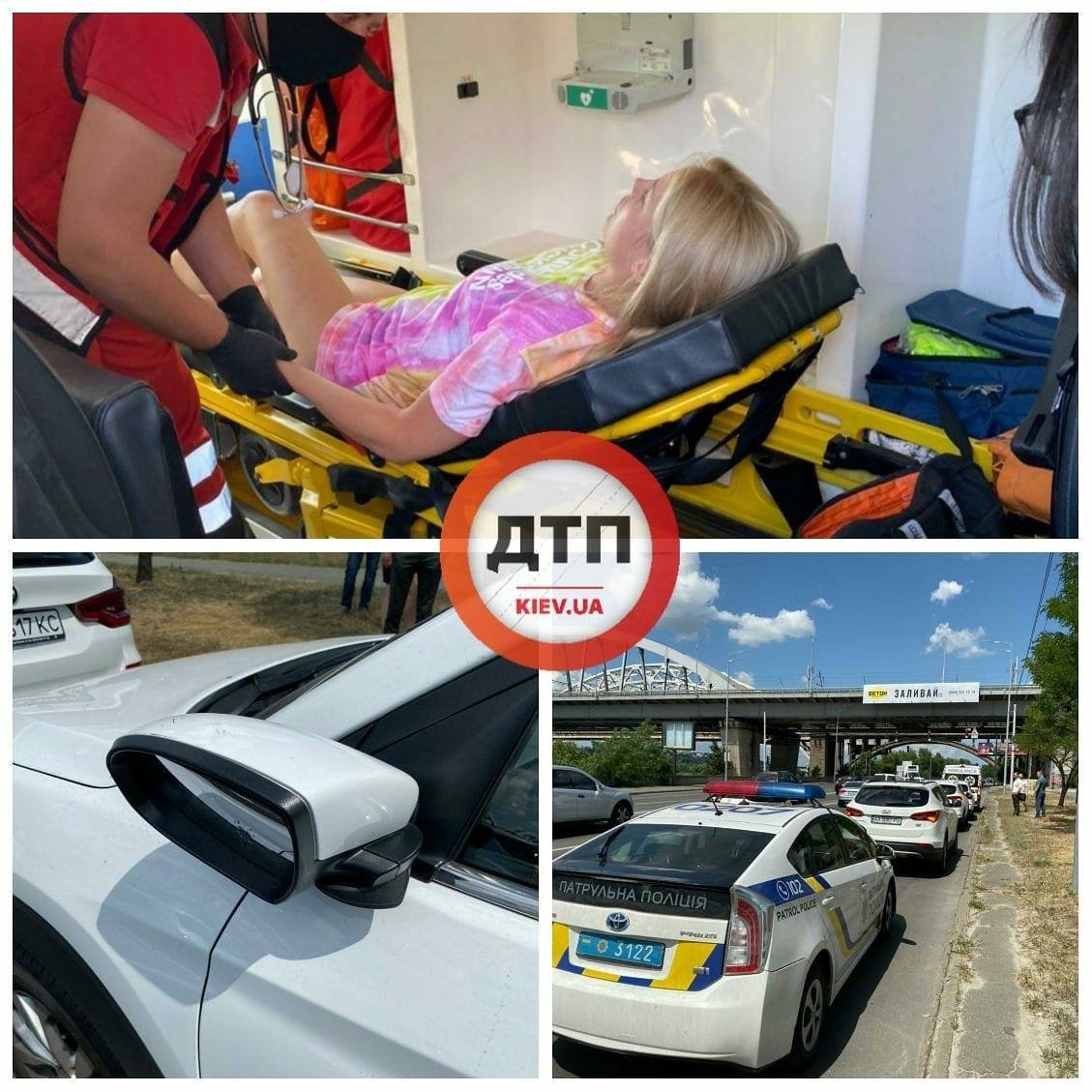 ЧП произошло на Днепровской набережной, перед Дарницком мостом. Водитель авто с номерами AA 5588 II напал на женщину. Она выезжала с парковки Novus.