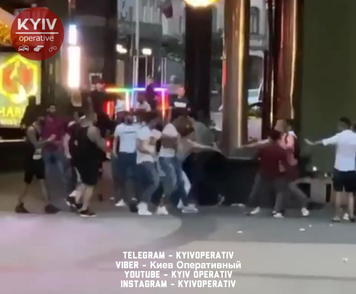 "Киев Оперативный" опубликовал в сети видео конфликта. На кадрах видно, что парни без разбора нападали друг на друга. Лежачих били ногами и руками. Также были слышны звуки выстрелов.