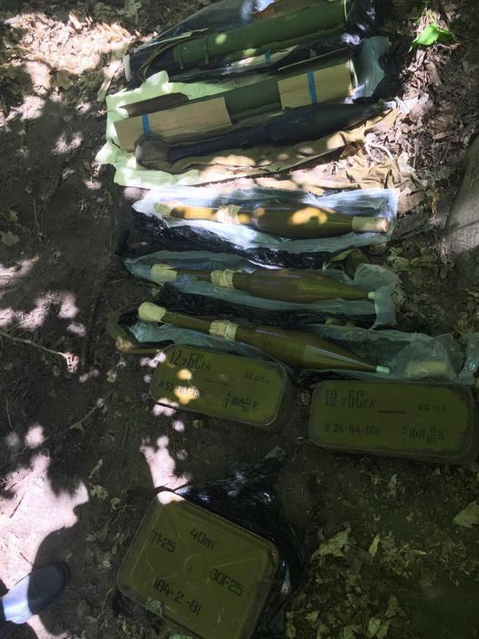 Тайник был оборудован на территории лесопарковой зоны в Голосеевском районе Киева. Также в нем находилось четыре снаряда к гранатомету РПГ-7, 40 снарядов ВОГ-25 к подствольному гранатомету и 160 патронов калибра 12,7 мм.