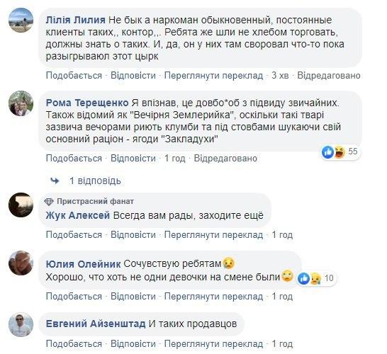 "Понаехало чертей", "Обдолбанный", "Он под футболку спрятал что-то воришка", "Не бык а наркоман обыкновенный, постоянные клиенты таких контор. Ребята же шли не хлебом торговать, должны знать о таких. И, да, он у них там своровал что-то пока разыгрывал этот цирк", - пишут комментаторы.